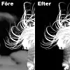 Dra sedan det svarta reglaget en bit åt höger för att göra bakgrunden så mörk som möjligt. Exakt hur långt du ska dra varierar dock från fall till fall. Det viktiga är att detaljerna inte går förlorade. När du väl märker att de minsta hårstråna börjar försvinna kan du dra det gråa reglaget åt vänster. På så sätt kommer detaljerna tillbaka och du kan prova att dra det svarta reglaget ytterligare en bit. Men ta inte i för mycket! Det bör fortfarande finnas en viss gråskala bland hårstråna för att slutresultatet ska bli bra.