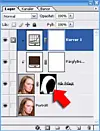 Den teknik med justeringslager som du använde för att byta hårfärg går förstås också att uttnyttja om du bara vill göra slingor i håret. Med den underliggande lagermasken kan du lätt se till att färgen kommer precis där du vill ha den.