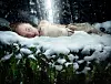 Sonja visar ytterligare en bild av en tjej som med sin utstyrsel och smink ser ut som en fe hämtad direkt ur en saga. Hon ligger på en bädd av snö.