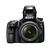 Storebror i den här releasen är Sony SLT a77, den är utrustad med bland annat Sonys nyaste processor för att kunna hantera stora mängder information snabbt. Något som behövs eftersom den lika nyutvecklade sensorn är full av pixlar, 24,3 miljoner stycken för att vara korrekt. Det ger en väldigt hög upplösning och det är imponerande att man kan tuta på med 12 bilder per sekund med den filstorleken. Under serietagningen får man dessutom följande fasdetekterande autofokus. Autofokusen har 19 punkter varav 11 är korsformade.Den fasdetekterande fokusen följer även med i filmläget.