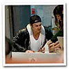 ut från seminariet får han signera någons dator såväl som ögna igenom portfolios innan han lyckas skaka av sig flocken av åhörare.