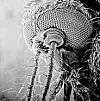 Porträtt av en honmygga. En liknande bild av Lennart Nilsson återfinns på baksidan av den svenska 100-lappen. Foto: Lennart Nilsson