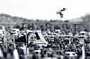 - Bilden tog jag under hösten i Åre. Jag hade precis anlänt till byn när jag såg att en FMX tävling hölls nere vid sjön, varpå jag hämtade min kamera i bilen. Det visade sig att Sveriges bästa motorcrossförare, Fredrik Berggren, som hade uppvisning. När jag kom ner till showområdet var det redan fullt med folk. Jag såg några andra fotografer nära rampen varpå jag kände att det inte var någon idé att konkurrera med dem på samma plats då vi skulle få samma typ av bilder. Jag såg mig omkring och såg en brandstege på ett närliggande hotell, så jag bestämde mig för att klättra upp dit och försöka få en vy. När jag kom upp, bestämde jag att jag ville komponera en bild som visade ett trångt utrymme men samtidigt fokusera tydligt på Fredrik. I och med att jag inte äger något så kallat tilt/shift-objektiv, var jag var tvungen att göra effekten i efterbearbetningen. Jag tror och tycker att det skapar en surrealistisk bild som samtidigt tydligt belyser Fredriks magnifika hopp.Prisutdelningen ägde rum i HongKong i torsdags och där kommer bilderna att visas i 14 dagar, sedan kommer utställningen att turnera runt i världen under två år.
