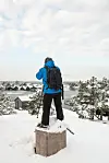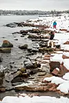 Snön runt båthusen börjar nu bli allt mer nertrampad och uppe på en kulle finns det så många skoavtryck att det inte råder någon tvekan om var de flesta har tagit sin översiktsbild. Längre ner i viken vandrar Olivia Sjögren, 21 år från Lund, längs med en liten väg och letar spännande detaljer. För henne väcktes intresset för naturfoto under en resa till Island medan hon studerade på Fotoskolan Jönköping. Här på Åland får hon chansen att fördjupa sig i detta.