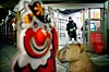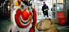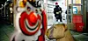 Utanför spelbutiken står en gb-gubbe. Utanför ica står nästa gb-gubbe. Jag ser ett mönster och kryper nära ica:s gubbe med vidvinkeln så att jag får med både gubbe och entré. Jag får stå framåtlutad i några minuter innan någon går ut genom dörren. Klick, klick.