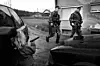 De svartvita fotografierna är mer vardag än konflikt. Många är befriande nog fyllda av mer svaghet än styrka; pausen i en lekpark, en soldat som dyngsur försöker blåsa liv i en lägereld, avskedskramen från en flickvän. Liksom alla de ensamma männen; sovande, grubblande, gående, väntande.