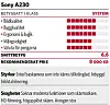Vi tycker att A230 är bästa valet. Mindre och billigare. För den som vill ha skärmsökare motsvarar funktionen pristillägget, därför samma betyg.